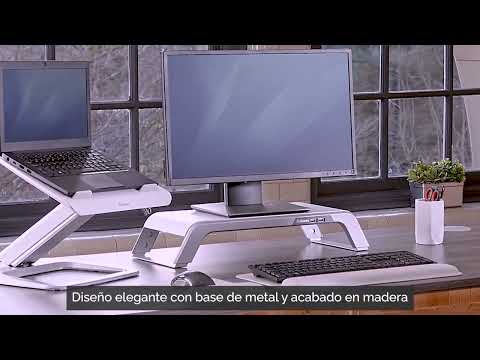 Maximaliseer de bureauruimte en verhoog uw monitor tot een comfortabele kijkhoogte om oog-, nek- en schouderbelasting te verminderen. 3 hoogteverstellingen om de juiste weergave te bereiken. Uitgerust met 4 USB-poorten om uw apparaten van stroom te voorzien: 2 USB 2.0 (Type A) en 2 2.1A snellaadpoorten (Type A). Elegant design met aluminium voet en houten afwerking, verkrijgbaar in wit of zwart.